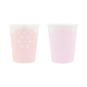 This pretty party range is inspired by broderie anglaise, a delicate lace design that's back in style. These pink and peach cups, teamed with soft pink and peach embossing and shiny white foil, will make your party drinks look effortlessly chic. They're perfect for bridal showers or any celebration where you want an elegant and refined look.