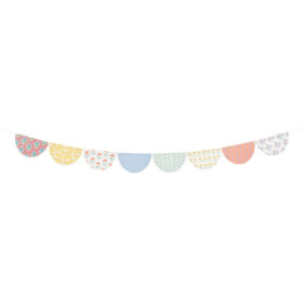 - Shiny gold foil pennants with scalloped details