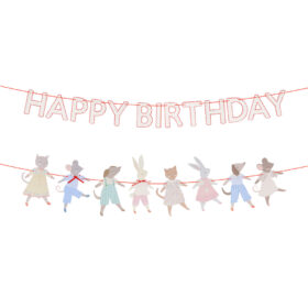 - 5 Animal toppers each holding a balloon in mint green, mustard, pale blue, red and pale pink