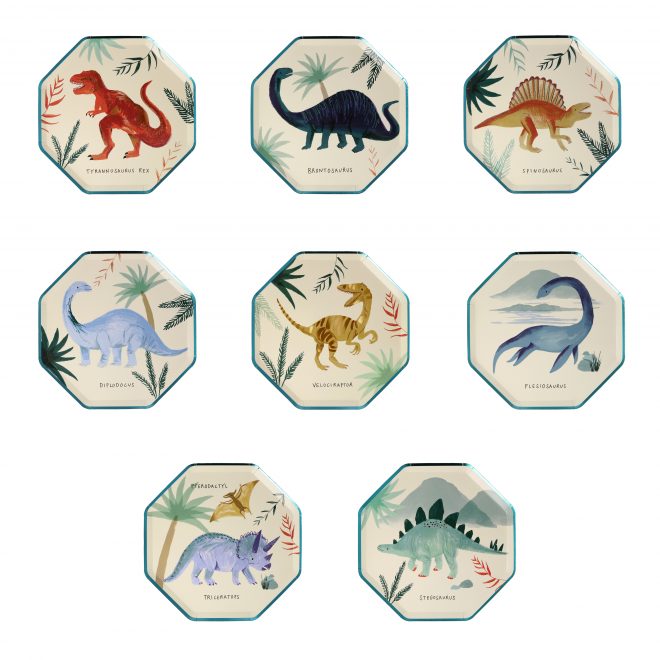 Make your dinosaur party look even more terrific with these brilliant Dinosaur Kingdom plates. Featuring beautiful illustrations of famous dinosaurs, with copper and green foil detail.