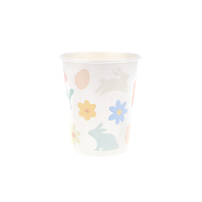 Complete your Easter table with these pretty paper cups, suitable for both hot and cold drinks. Each one is decorated with charming illustrations of bunnies, carrots, flowers, a chick and eggs, bringing a playful, decorative touch to your celebration. Perfect for serving drinks with snacks, dinner or dessert, they'll add effortless style to your setting. Guaranteed to delight guests of all ages.