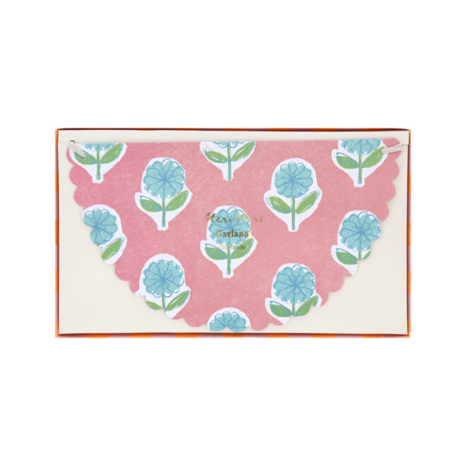 Bursting with color and charm, this beautiful paper garland takes inspiration from traditional Indian block prints, decorated with beautiful floral patterns in summery shades. Perfect to add a chic decorative touch at grown-up gatherings and for kids who adore style. Hang it wherever you'd like an instant lift of color and joy – across a porch, window, wall or mantel – then bring it out time and time again.