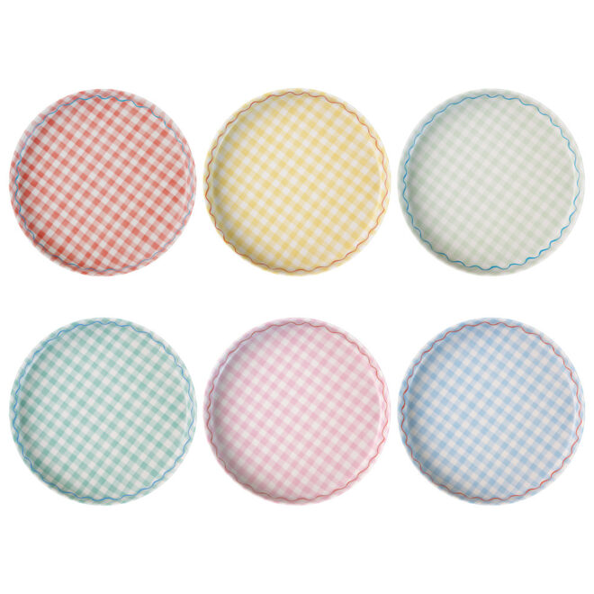 Gingham is just perfect to give a chic summer feel to your party table. These stylish reusable large plates feature this charming design, with a mix of six cheerful colors, ideal for a birthday party, baby shower, picnic or garden gathering. Easy to layer with matching or coordinating decorations, they're perfect to serve main dishes and desserts with flair.