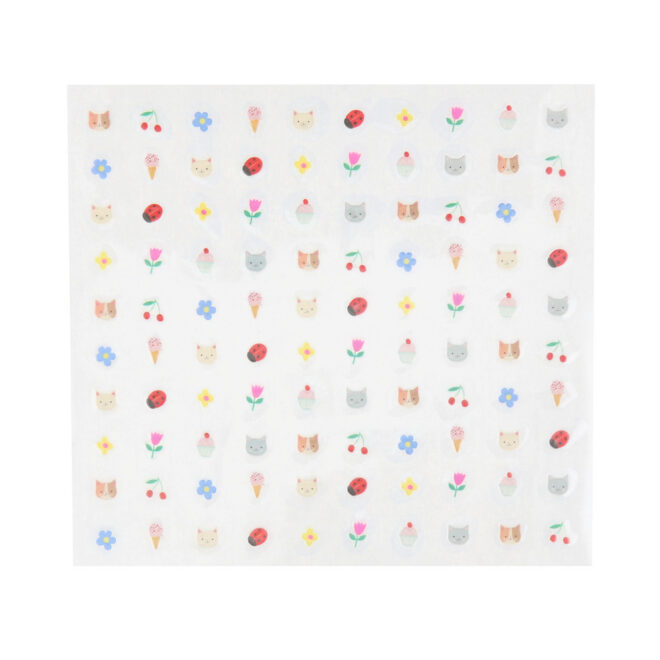 Embrace the graceful charm of the folk interior trend with our Kitten Club nail stickers. Simply apply these cute nail accessories for enchanting effects in seconds. Presented in joyful packaging, this set features adorable and fun motifs including kittens, ice cream, cakes, flowers and many more. Perfect for a playful party activity, to pop into party bags, or for sleepover fun.