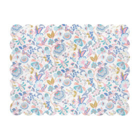 Introducing our exclusive collaboration with Liberty, statement placemats that enhance any dining occasion. A floral Liberty print design, with prominent pink tones, is teamed with a scalloped edge for a sophisticated look. This placemat is made from composite wood with a cork backing, for durability without compromising on style. Ideal for dinner parties, or everyday use, to add refinement to your table setting.