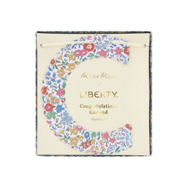 Celebrate a happy occasion in style with this charming congratulations garland. Featuring a soft, colorful mix of classic Liberty designs, it’s perfect for birthdays, anniversaries, engagements, weddings, graduations and more. The scalloped paper letter pennants are pre-strung on a sumptuous cream velvet ribbon, making it easy to hang in a doorway, on a wall, or above a mantel for an instant touch of joy. Reuse it time and time again to create an uplifting atmosphere.
