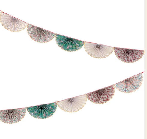 We've collaborated with Liberty to bring a touch of elegance to your Christmas decor. This stylish scalloped paper fan garland, with Liberty prints in joyful festive hues, and pale matt gold foil accents, blends charm with sophistication. Featuring a luxurious red velvet ribbon, it's ready to drape effortlessly across your mantel, staircase, doorway, window or party table. When the celebrations are over, simply pack away, then reuse year after year.