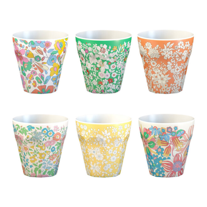 One cup set, hundreds of parties! We've teamed up with Liberty to give you sophisticated and reusable tableware. These melamine cups each have a different Liberty print design to complement any party theme or special meals. Use again and again for indoor or outdoor occasions, like garden parties, picnics or afternoon tea. They are packaged in a box with a Liberty print design, ideal to store them in when not in use, which is very giftable too.