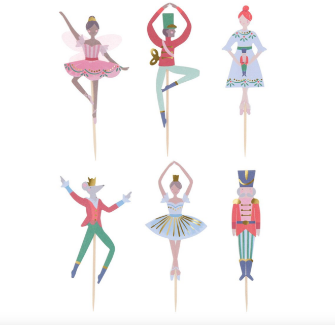 Bring the timeless magic of the Nutcracker ballet to your party by serving Christmas cupcakes made with this special cupcake kit. It includes iconic character cake toppers and striped cupcake cases, in a stylish blend of classic and modern colors. A chic and practical way to capture the charm of this enchanting fairy tale, and add a touch of tradition to your treats.