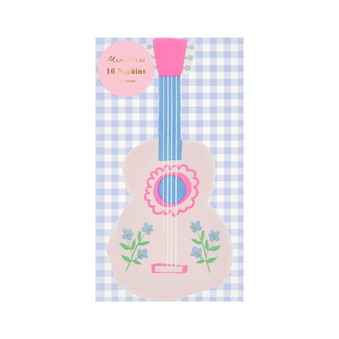Bring the whimsical sophistication of the folk interior trend to children’s parties with these pretty pink napkins. Perfectly sized for little hands, each paper napkin is shaped like a decorated guitar to capture the joy of music and celebration. Ideal for rustic-inspired parties, country music parties, or any gathering for children who love to strum and sing. Perfect to add a playful, storybook enchantment to every table setting.