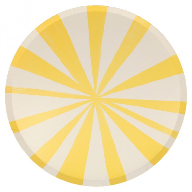 Add a ray of sunshine to your party table with these vibrant yellow and white striped plates. Yellow is a fabulous fun color and is perfect for all celebrations